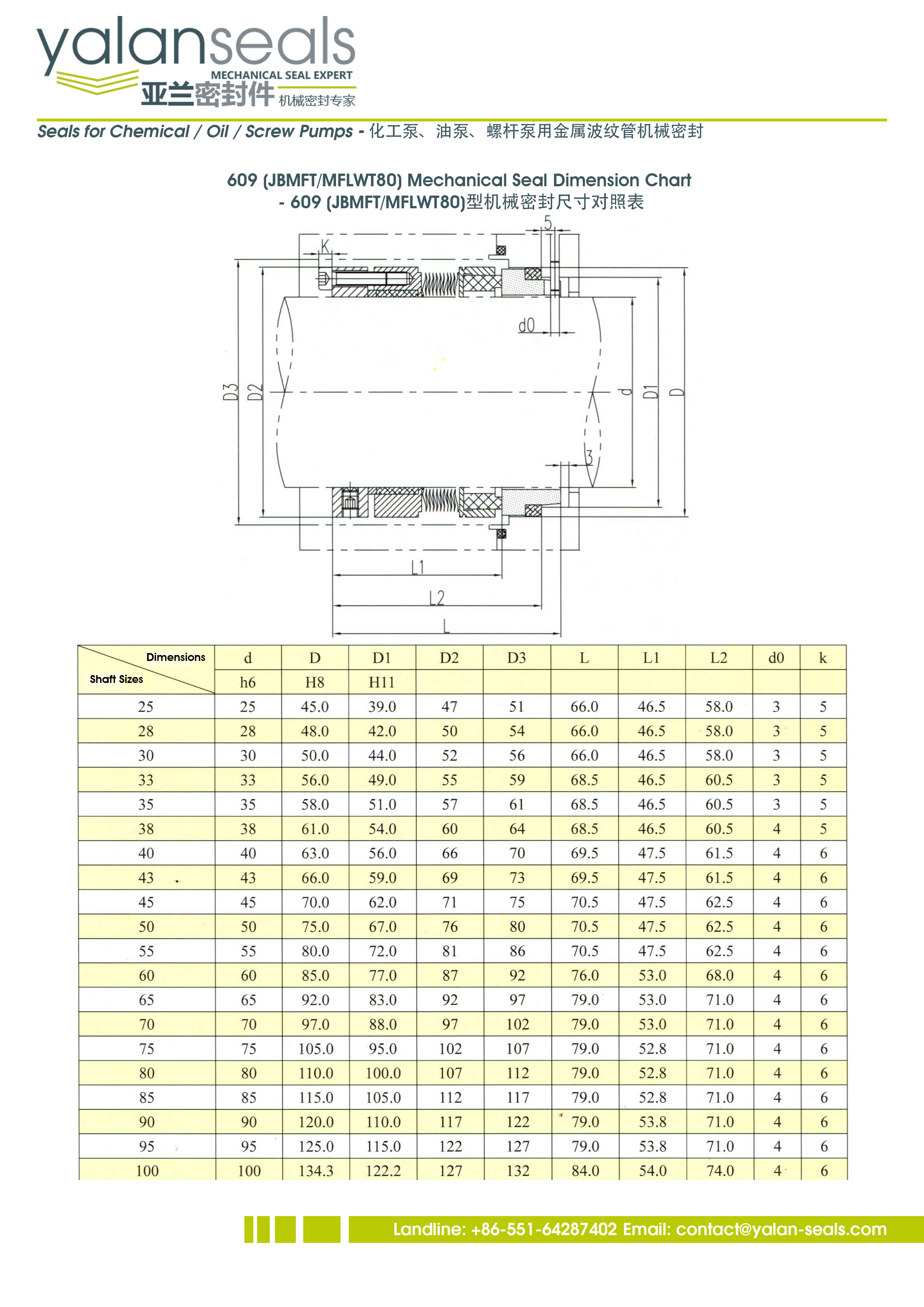 結構特點:單端面,平衡型,任意旋向,金屬波紋管,集裝和非集裝式機械密封件。輔助密封件為柔性石墨材料,適合用于復雜工況和混合介質的情況。此機械密封件安裝簡便,調整方便,性能優秀,尤其適合在中高粘度介質或低溫介質中使用。
