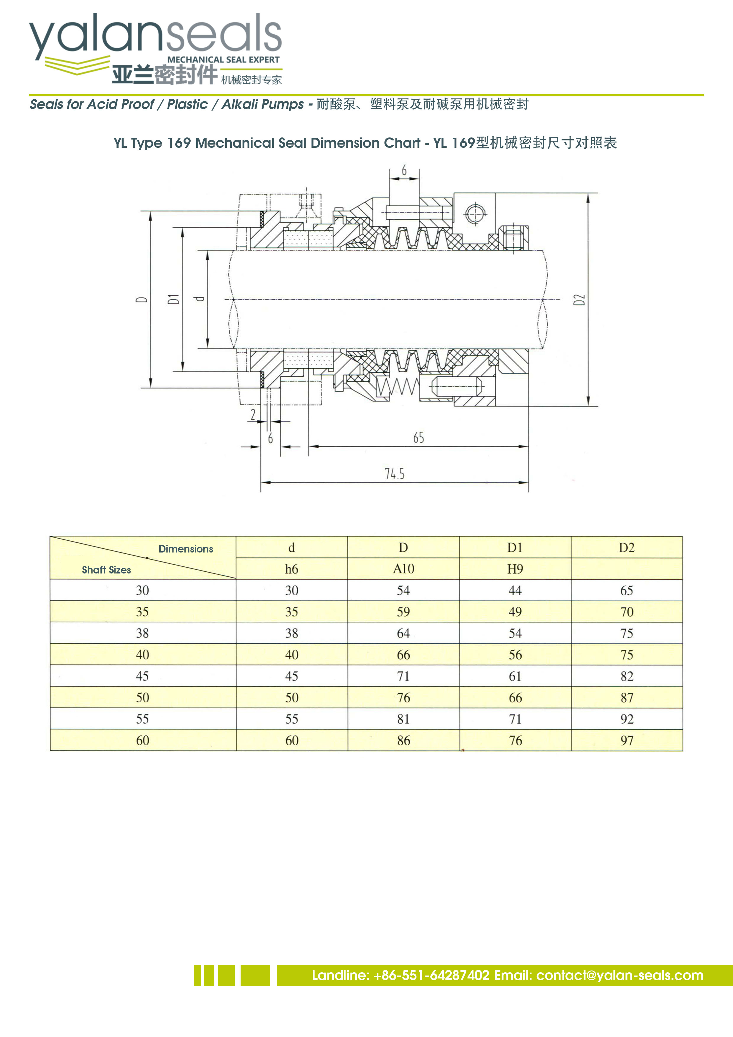 亞蘭169型多彈簧PTFE波紋管機械密封件,主要用于化工泵