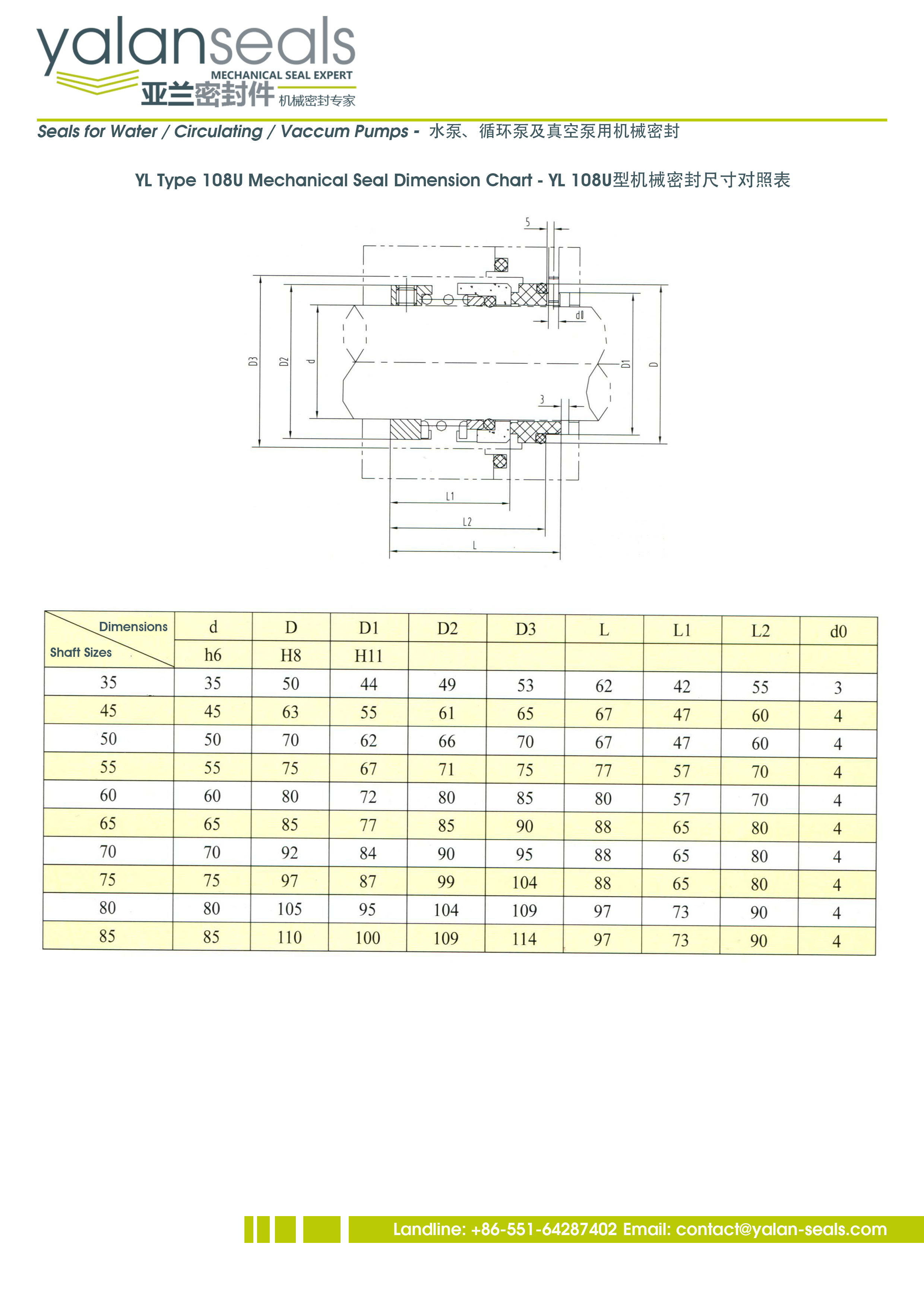 亞蘭108U型單彈簧機械密封件,用于水泵、循環(huán)泵和真空泵。
