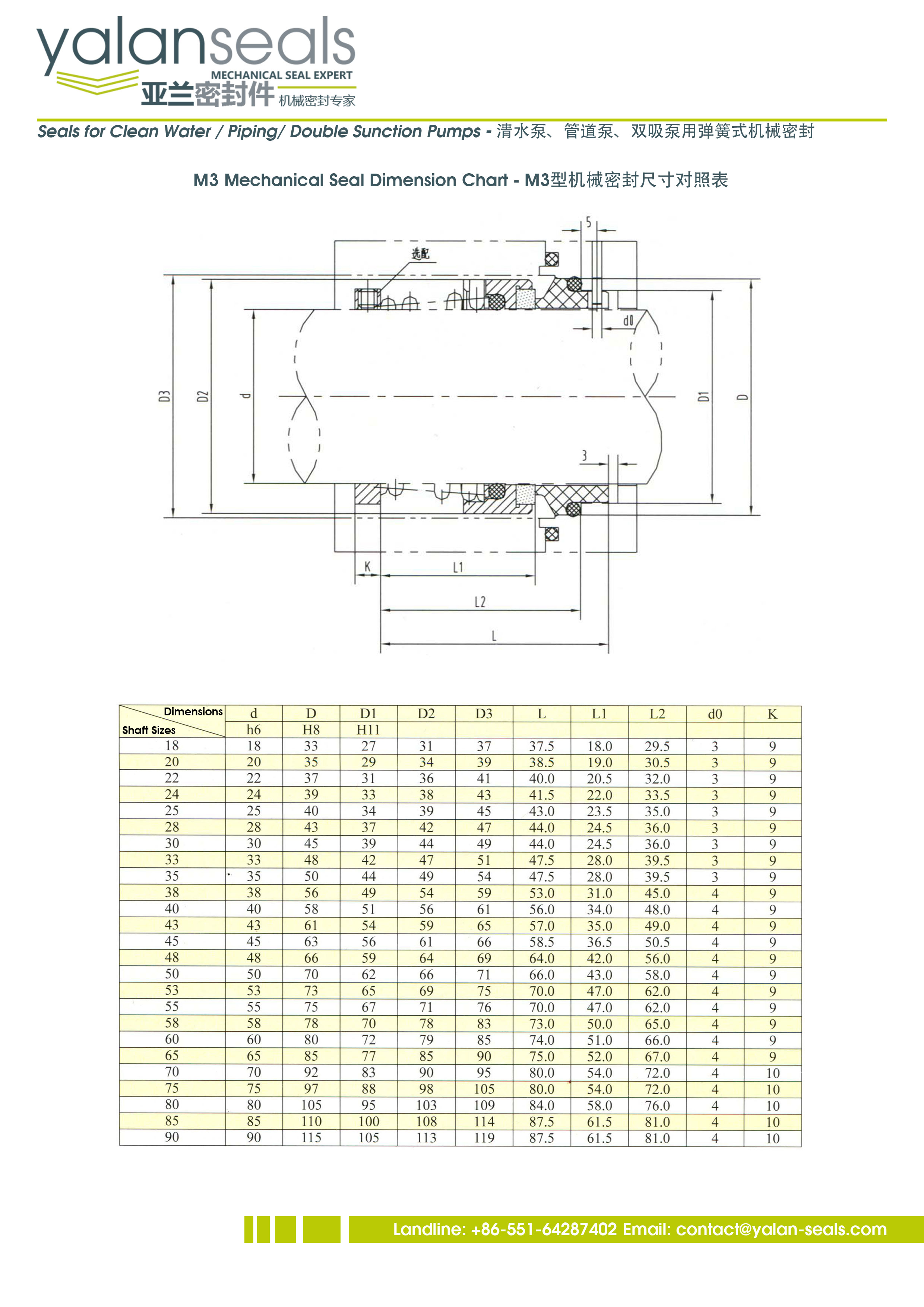 亞蘭M3(M37G)、M3N及M377型機械密封件,用于清水泵、循環泵和真空泵。